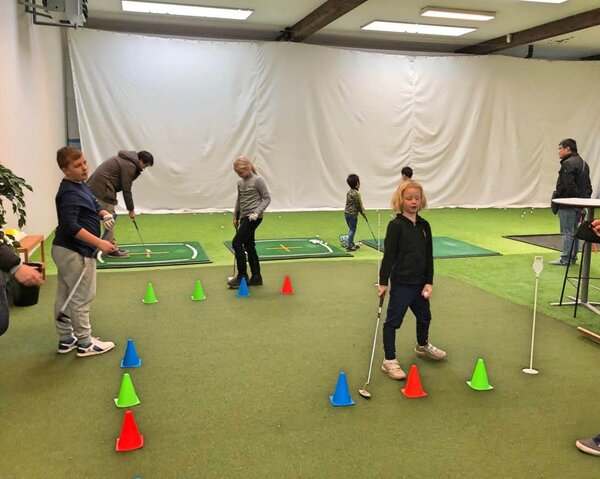 Vi træner hver torsdag, hele vinteren, fra kl. 16-17. Træningen er opbygget af sjove øvelser og lege der har til formål at udvikle barnets golfmæssige, motoriske og sociale kompetencer.